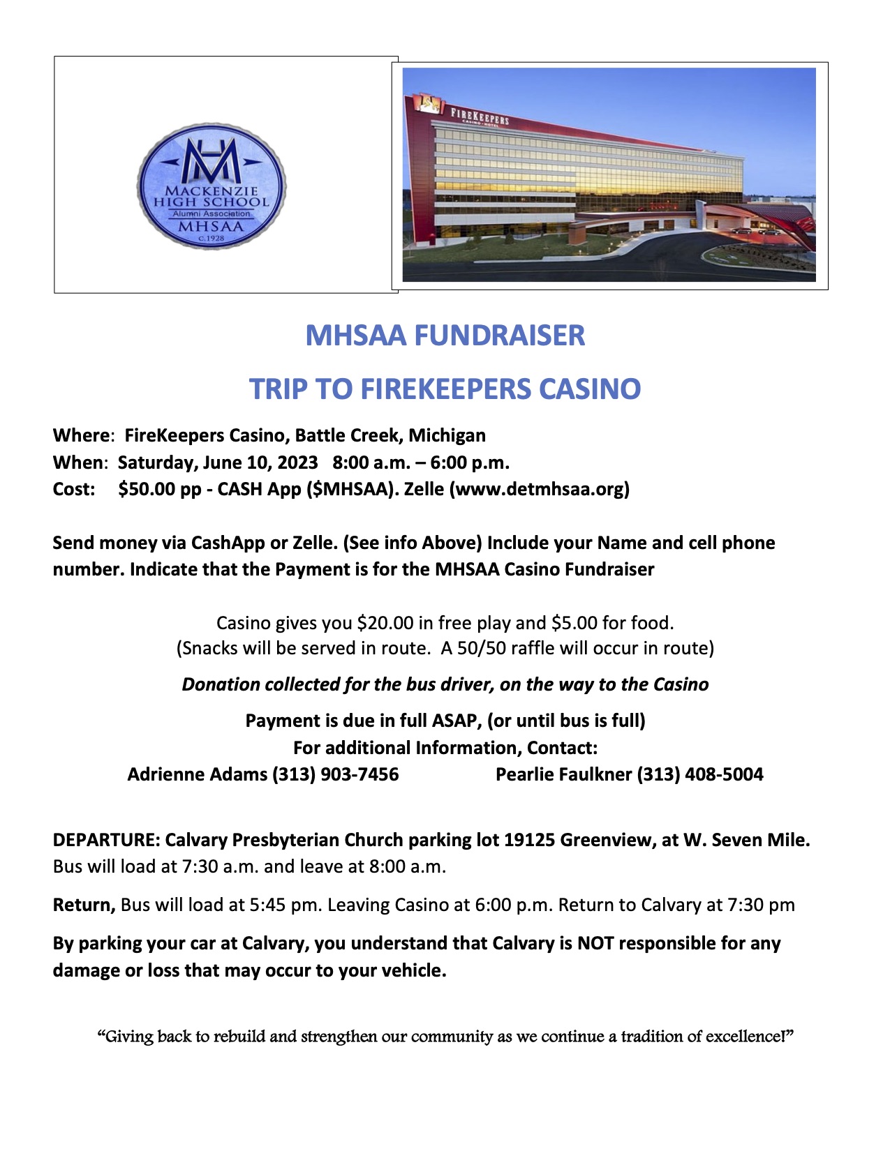 The Detroit Mackenzie High School Alumni Association is a 501(c)(3) charitable organization. Donation, contribution and membership due payments are tax deductible under federal and state tax laws.